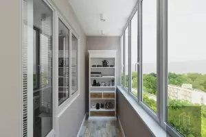 Лоджия может быть обеспечена полным обзором вокруг благодаря использованию панорамного остекления. Для этого необходимо установить окна, которые занимают всё пространство от пола до потолка с трех сторон парапета. Панорамные окна могут быть выполнены из пвх и алюминия, с раздвижными или распашными створками.